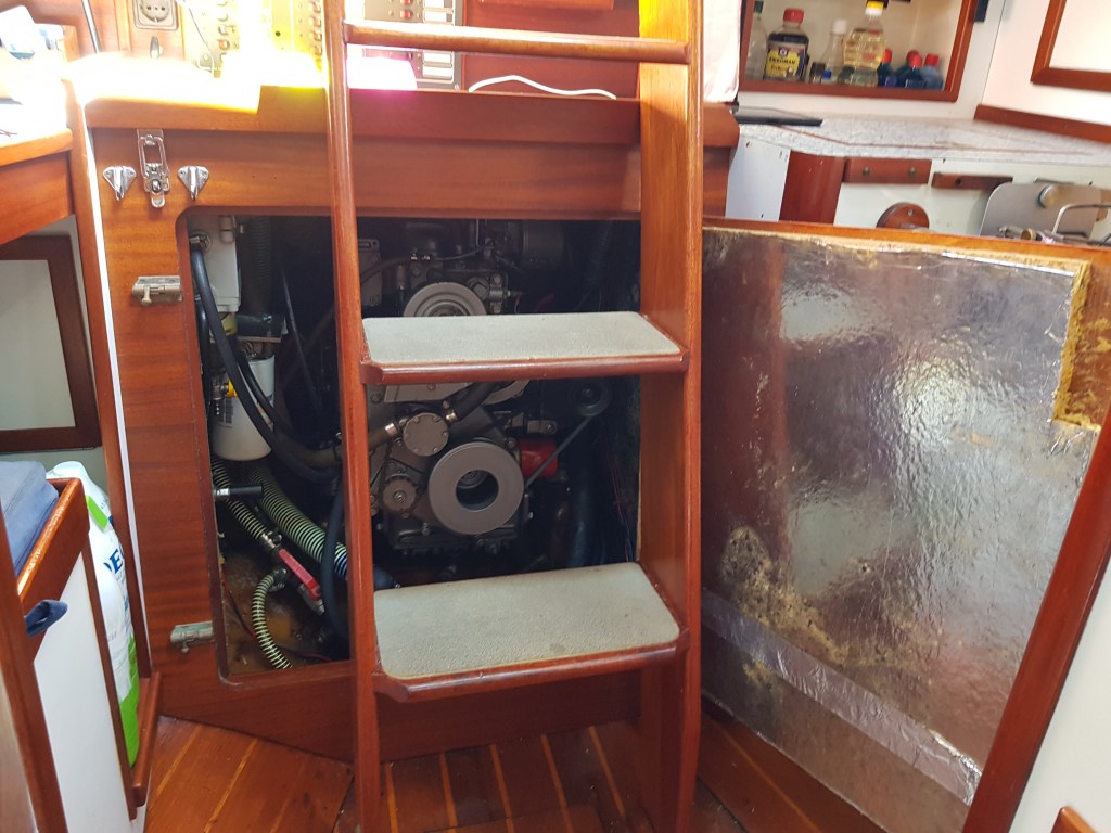 Only after contact with our sailing friend and diesel expert Bennie do we find out what is actually going on. The tube where the smoke comes out should actually be connected to the air filter and not hang loose in the engine compartment. Ron looks further in the manual and the engine and eventually finds a connection hidden on the back of the air filter. Would our problem really not be bigger than a loose tube and can we stop our already started search for a new engine?
